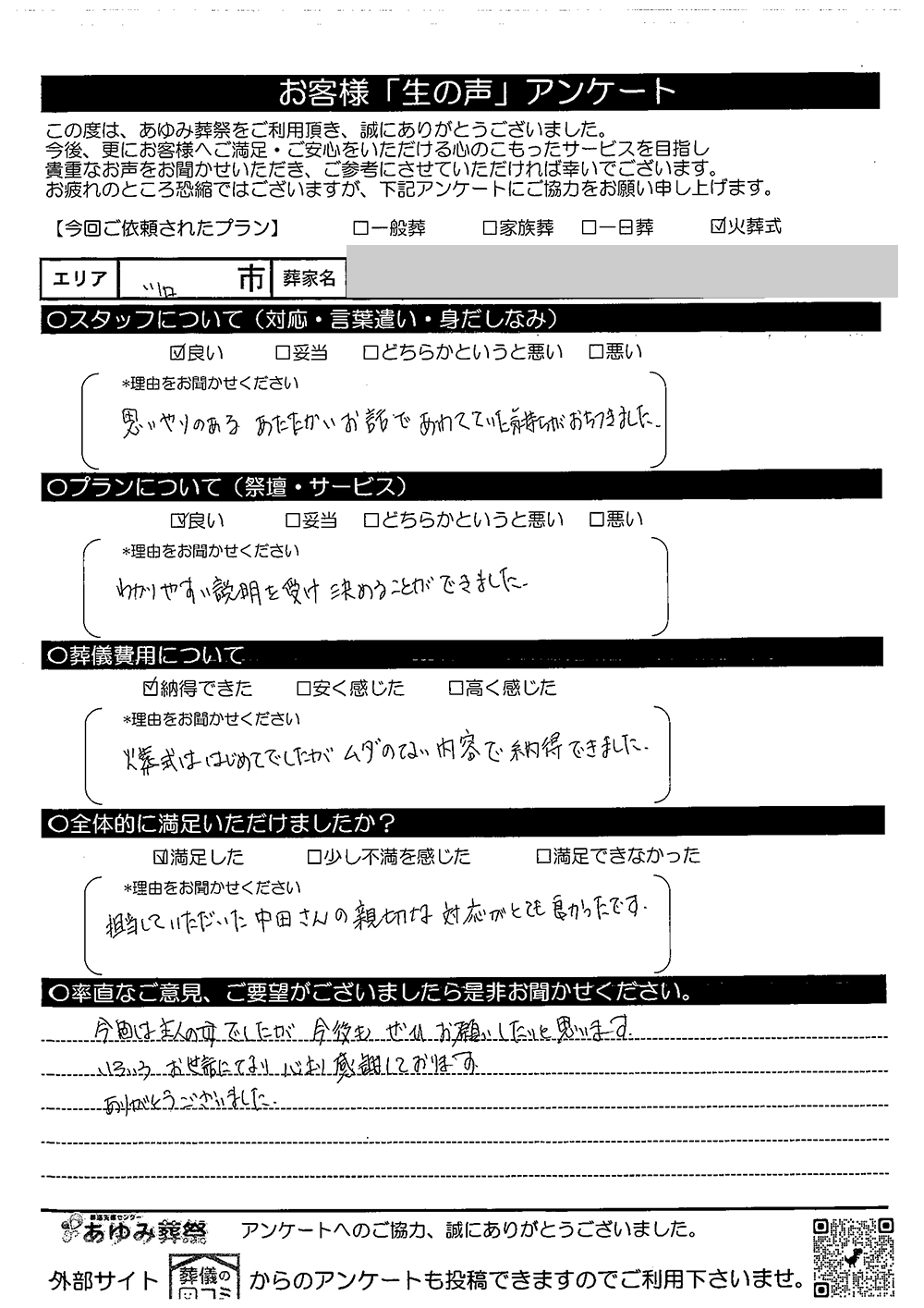 ご満足いただけたとのお声をいただき、心より嬉しく思います。 これからも一つひとつのご葬儀を大切に対応してまいります。